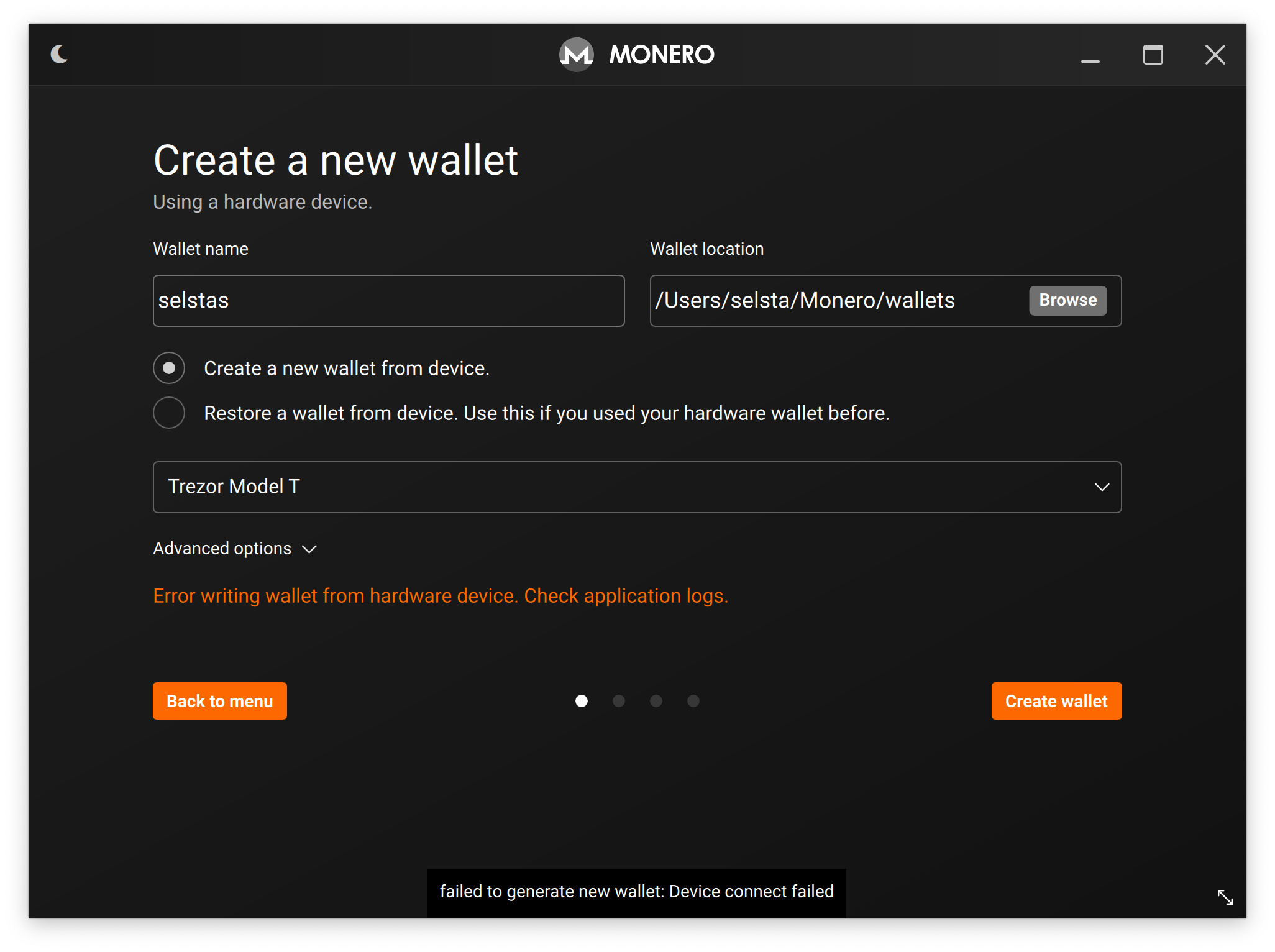 I am unable to create a wallet on my Nano X from the Monero GUI. I keep getting this message: Error writing wallet from hardware device. Check application logs