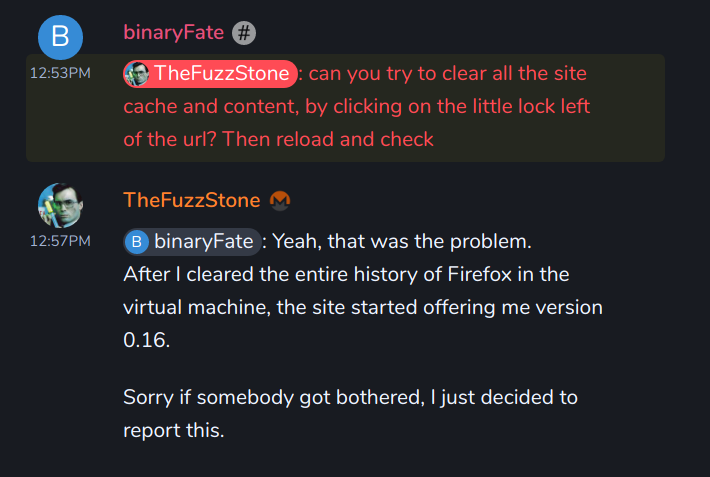 TheFuzzStone[m]Why when I want to download the last GUI from a host site offers me 0.16, and when from a virtual machine - then I am offered 0.15?